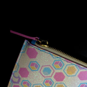 Introduced on the runway of the First Shield Haute Couture collection, the Pluton clutch bag is clad in mirror-effect coated canvas—a groundbreaking weave shot through with micro-glitter, like a frozen Milky Way. Each glint reveals the Hexagon monogram, hand-screen-printed from Julien Fournié’s geometric motif, bestowing the piece with its couture signature.