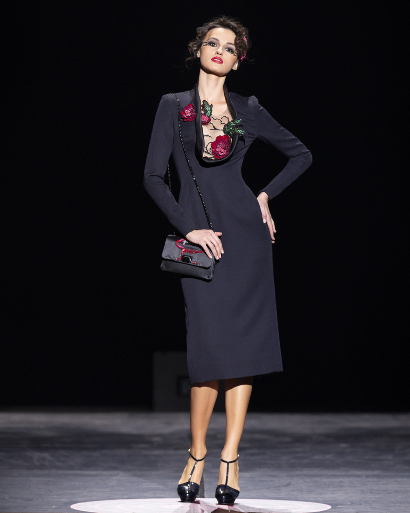 Revealed on the runway of the First Vamps collection, it captivates with a 3D motif where faceted pearls, ombré sequins, sparkling crystals, and metallic blades converge in a precious harmony.