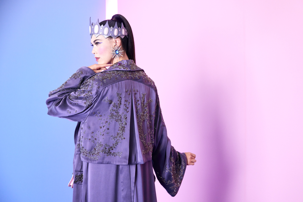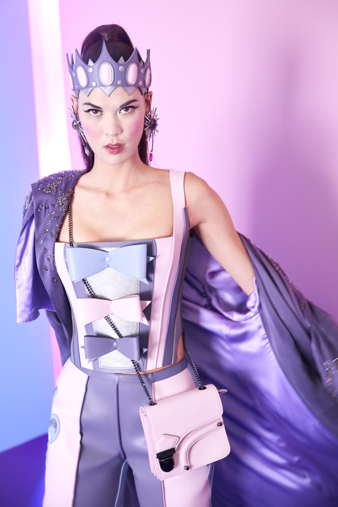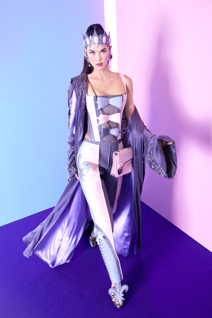 Chapter 19, the warrior queen The first look in the Last Queen collection features an 18th-century-style corset-armor with 3D effects,