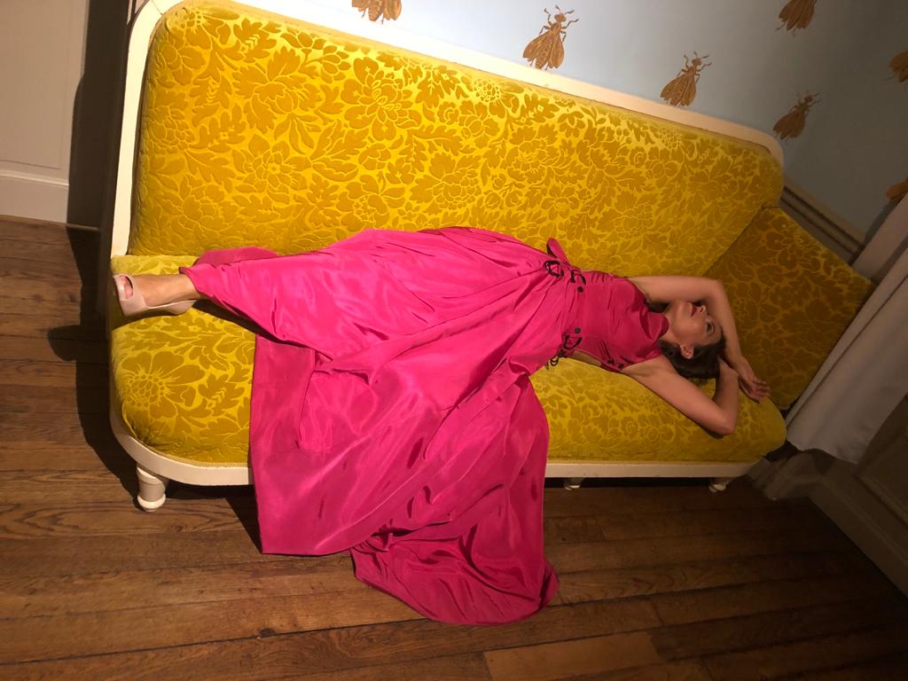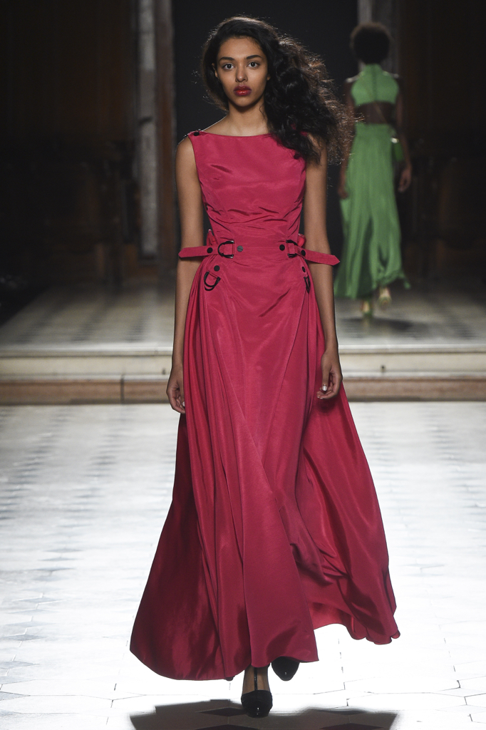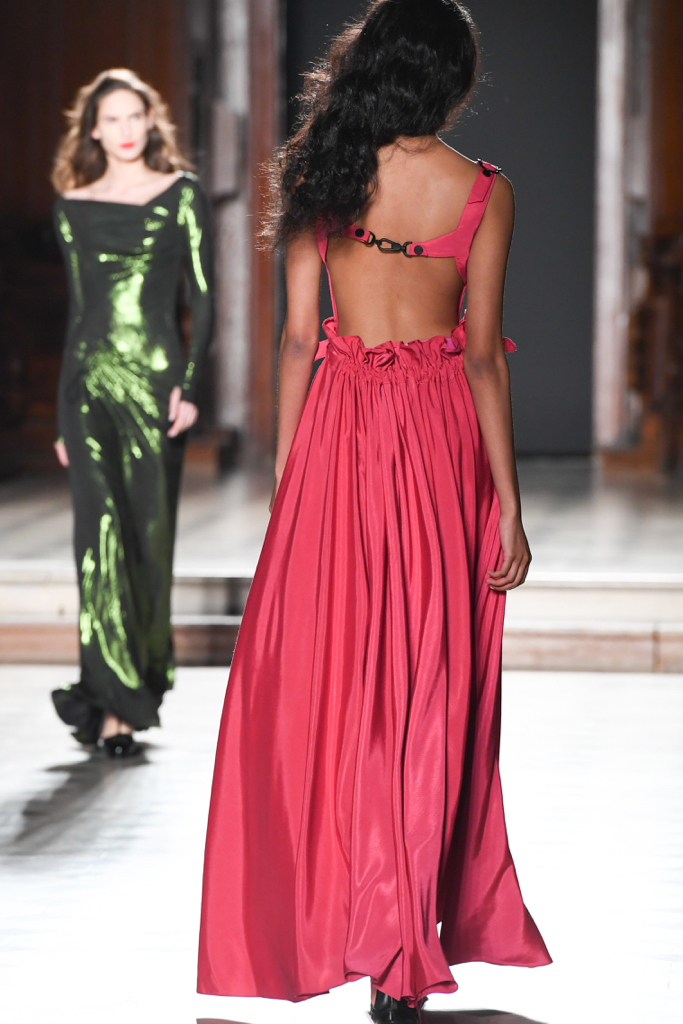 La seconde, de la collection Haute Couture Première Plénitude, est une robe mystère dos nu en faille de soie chocking pink.