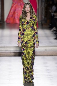 Très colorée, cette collection proposée par le créateur de prestige Julien Fournié offrait aux spectateurs un allé simple pour les Antilles ! Composées de couleurs vitaminée, les tenues, toujours empruntes au glamour Fournié, prouvaient son aptitude à créer sur n’importe quel thème donné ! Toutes en élégance, ses robes estivales comblaient parfaitement les formes de ses modèles, tandis que les motifs ajoutés sur chacune des pièces de sa collection nous transportaient dans son univers teinté de luxe.