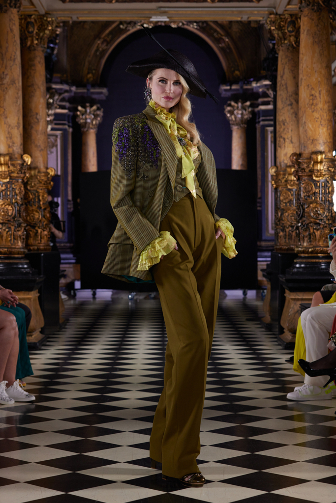 Saluons la coupe impeccable du pantalon réalisé par Jacqueline Eme, au sein des ateliers de la Maison Julien Fournié Haute Couture.