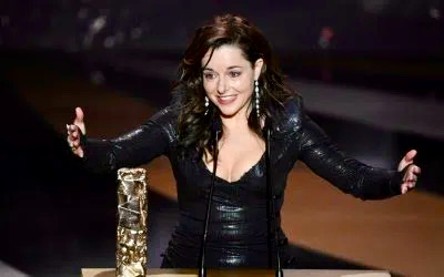 L’actrice Laure Calamy, César de la meilleure actrice féminine pour son rôle dans le film de Caroline Vignal, Antoinette dans les Cévennes, était habillée par Julien Fournié Haute Couture lors de la cérémonie qui s’est tenue à la salle Pleyel à Paris.