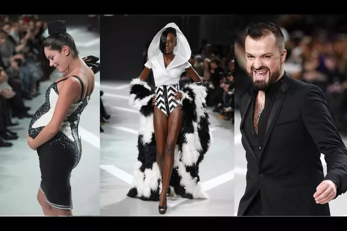 Des pin-up futuristes vêtues de matières façon «double-peau», de robes aux «découpes anatomiques» propre au designer, faisant l’éloge d’une féminité décomplexée et sophistiquée. Julien Fournié nous avait en outre promis une «surprise» dans son show, et nous n’avons pas été déçu du voyage, lorsqu’une femme enceinte a fait son apparition sur le catwalk.