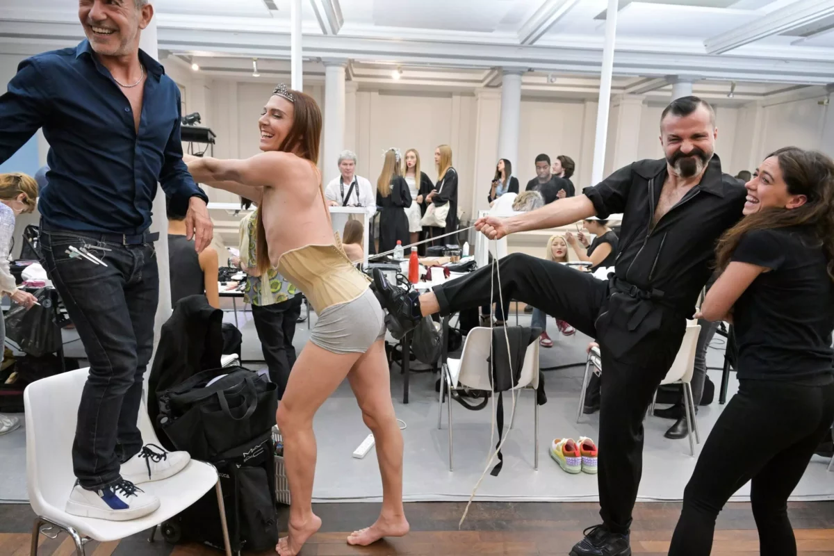 Il a « ouvert le propos » mardi en faisant défiler Romain Brau, comédien, performeur et figure LGBT. Couronné d’une tiare sur sa longue chevelure rousse, il portait un vertugadin géant tandis que les femmes avaient des looks militarisés.