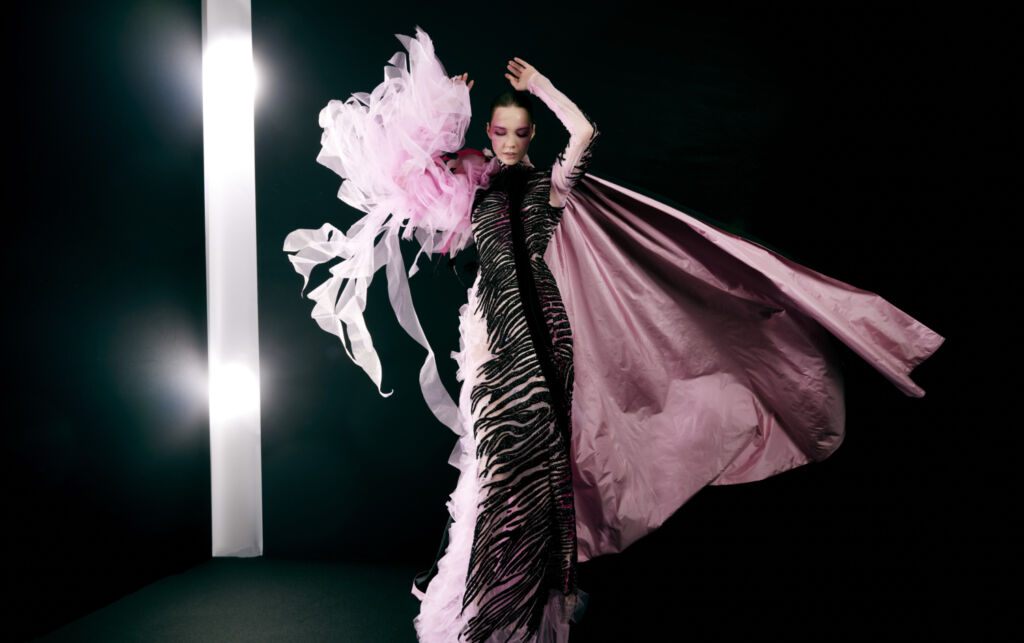 Julien Fournié s’intéresse à la fusion de la technologie et de la mode, incorporant souvent de nouvelles techniques numériques à la tradition de savoir-faire artisanal de la Haute Couture française.