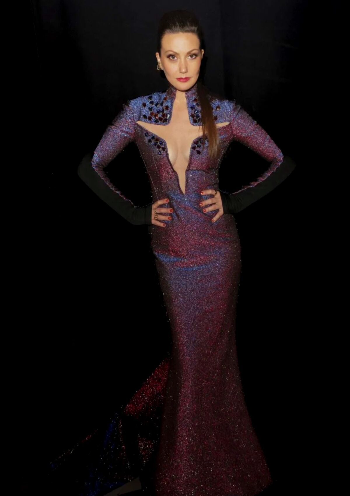 Jumpsuits : chez Julien Fournié : un jumpsuit slim violet et scintillant Les tendances des jumpsuits violet dans ses teintes